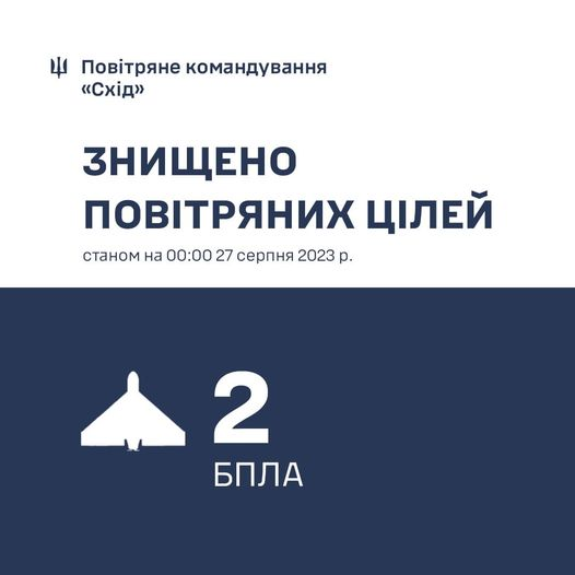 У ніч на 29 грудня (з 21:00 28 грудня) противник атакував 25-ма ударними БпЛА типу Shahed, Гербера і безпілотниками інших типів із напрямків: Орел, Міллєрово – рф., Гвардійське - ТОТ АР Криму, Донецьк - ТОТ, близько 15 із них ‘’шахеди”.