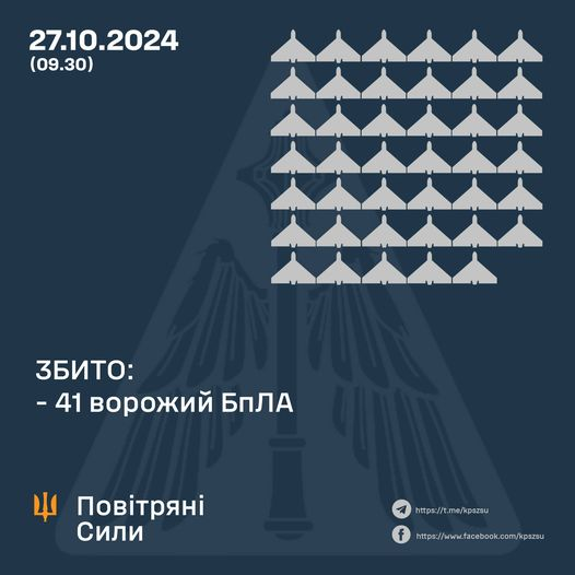 💥 За попередніми даними, станом на 08:00, протиповітряною обороною збито/подавлено 101 ворожий БпЛА типу Shahed, Гербера і дронів інших типів на півночі, півдні та сході країни.